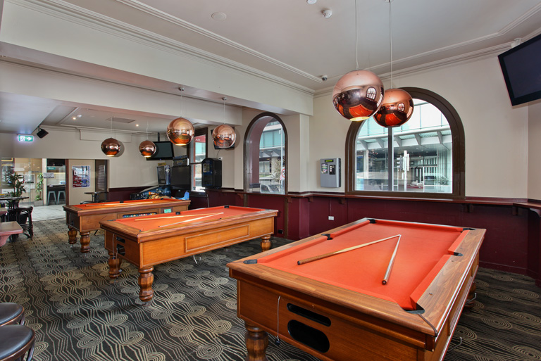 Open till late every night, the Sports bar boasts 8 wide screen plasmas, equipped with the latest in racing and sports betting technology. Showing FOX Sports, Setanta, ESPN & Sky Racing, every local and international sporting event is televised. With three pool tables and a full range of beer and spirits, the Commercial Hotel Sports Bar is an ideal place to enjoy a drink and support your favourite team.